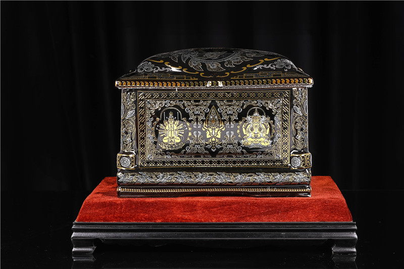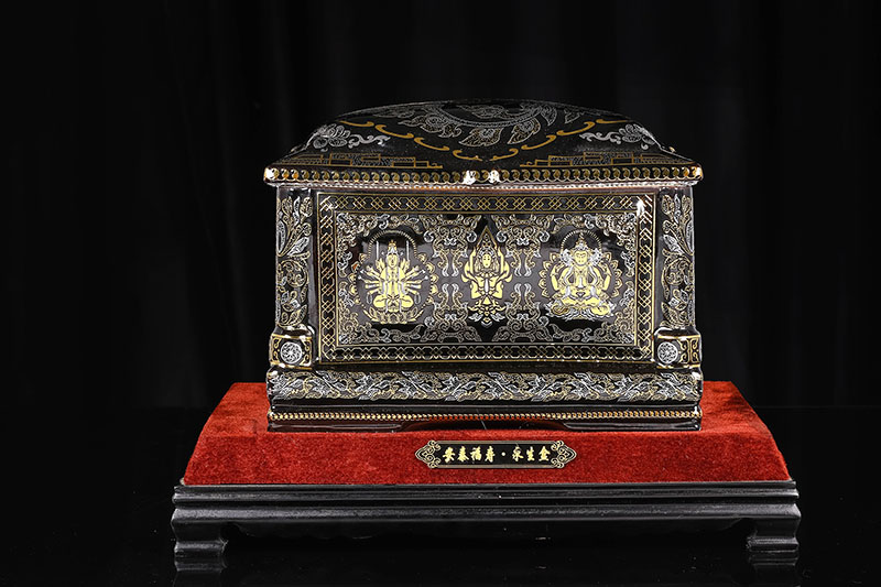 這款【佛光普照】產(chǎn)品,采用的是“錯金銀”工藝,它是中國非物質(zhì)文化遺產(chǎn)名錄的一項美麗的藝術(shù),源自于“春秋戰(zhàn)國時期”至今已經(jīng)2000多年,把這種精湛工藝運用到我們永生盒,既是傳承,亦是發(fā)揚!產(chǎn)品上的圖案源自藏傳佛教的“唐卡”寓意永登西方世界,是生命的輪回不止,代表著中國傳統(tǒng)佛教的美好寓意。尺寸:300x230x210mm