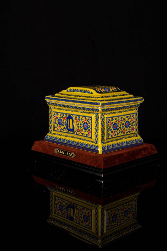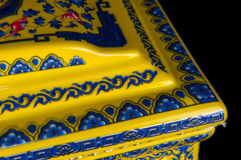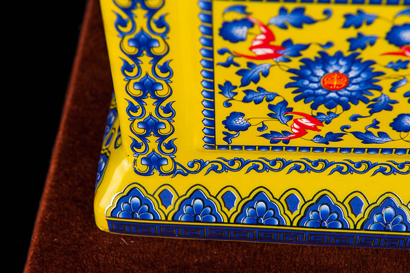 這款【福在眼前】產(chǎn)品沿用我們瓷都“景德鎮(zhèn)”具特色的青花,還有古代皇帝才能用的黃色作為底色,“纏枝蓮”、“蝙蝠”、“永生花”作為點(diǎn)綴,整體給人感覺特別典雅以及文藝。產(chǎn)品上繪上“蝙蝠”(寓意福到)盒“永生花”(寓意生命的永恒、眼睛的形狀)顧名思義“福在眼前”。尺寸:300x230x210mm