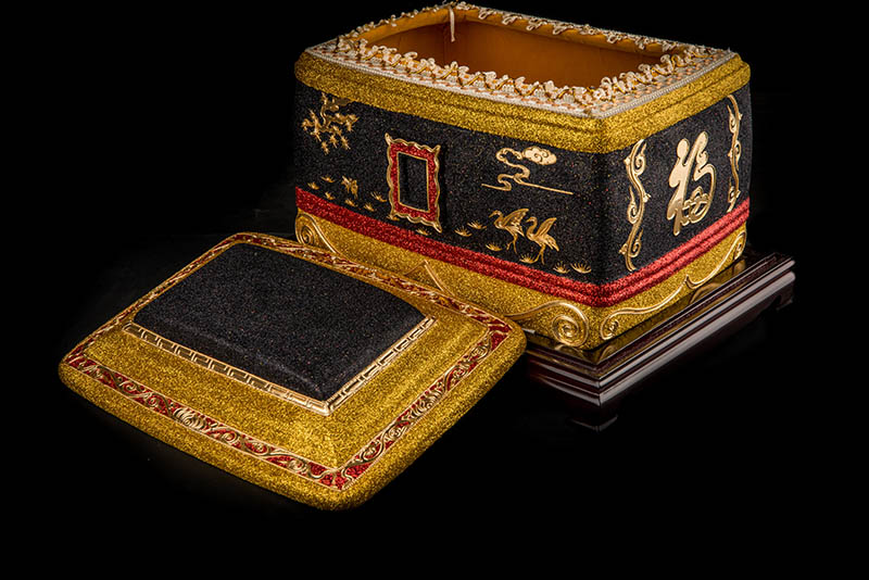 產(chǎn)品特征:24K金線漆線雕工藝,具特色的傳統(tǒng)民間手工藝精品,精細(xì)雕刻,線條流暢,顏色搭配簡(jiǎn)約大氣,松鶴延年圖案更是寓意福壽延年。